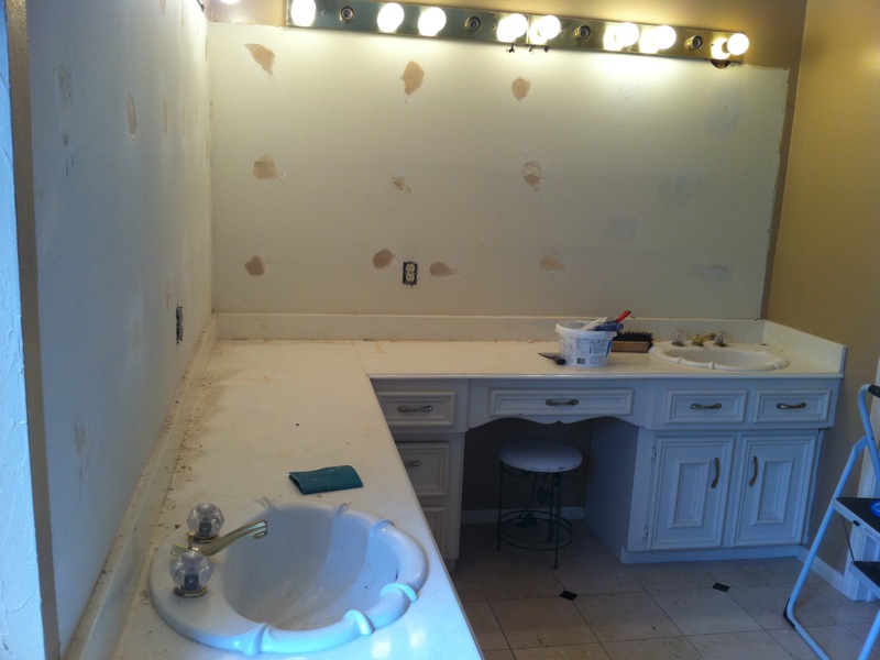 The spots on the wall are where the mirror adhesive tore the wall board. There was plenty of drywall repair involved. Fortunately, I'm comfortable with this work.