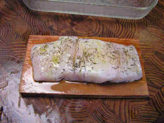 CEDAR PLANK GRILLING   The filet is then placed skin-side down on the oiled plank.     HOME PAGE       SLIDESHOWS