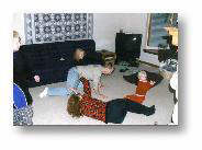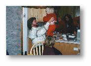 The One smiles, grabs her blanky and reaches for Daddy. A sign that it is time for the strangers to leave.
