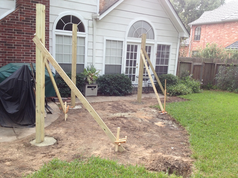 Columns being set after sod removal