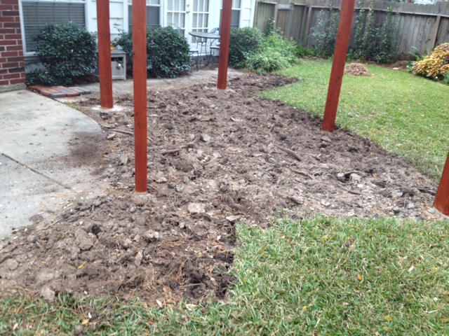 Structure stained. Prepping the top layer of soil for removal