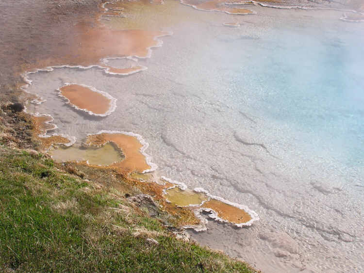 Close up of mineral deposits along the rim of a hot spring.
