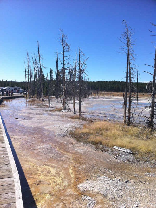 As the outflow of the hot springs spread across the landscape, the corrosive waters take no prisoners.
