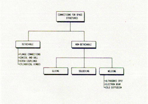 Connection designs for trusswork systems used on space platforms are an important element of overall assembly time for orbital projects. The use of a hub spar and strut system similar to the Star Bay System (Bak, D.J. 1987; Covault, C. 1987), is a likely candidate for the Space Station. This "push and lock" type of connection lessens hand fatigue for the astroworker and is easily worked by remote manipulators. Larger structures will require the use of detachable and non-detachable connections, such as a combination of hub-and-strut system with welded or soldered joints.