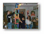 After hours of lifting, measuring, straining, and sweating, a tower is completed. A tower like no tower ever built before. The One is pleased. The strangers are indeed family. Let the party begin!