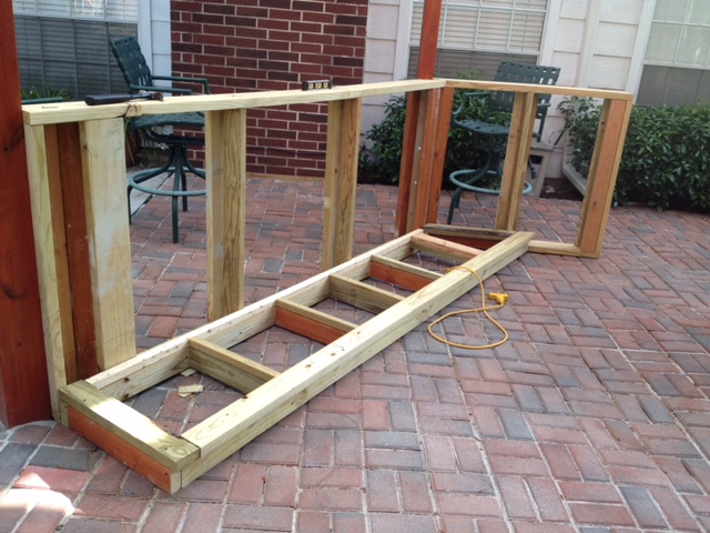 All 900 pavers done. Wish I could say I improved with experience... but... NOPE. Cabinet base framing shown